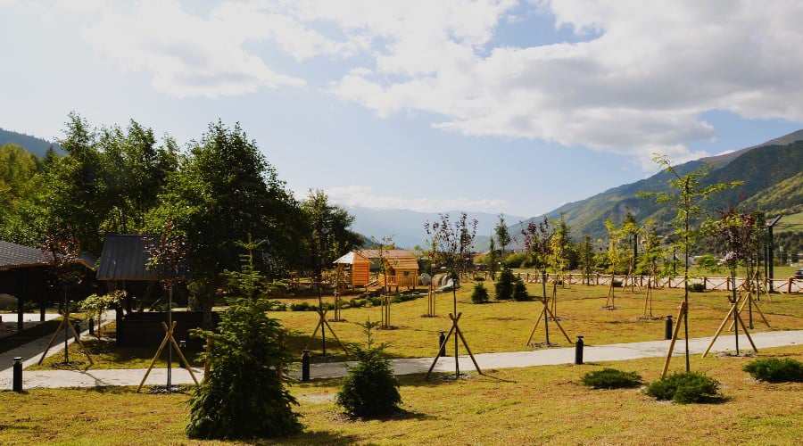 მესტიის მუნიციპალიტეტის მერიის ინფორმაციით, 6000 კვ.მ.-დე ტერიტორიაზე, ფრაგმენტულად მოეწყო სარეკრეაციო სივრცეები, სპორტული და საბავშვო გასართობი ატრაქციონები, სხვადასხვა ტიპის ფანჩატურები/მოსასვენებელი სივრცეები, მყარი ხის მასალის მდინარის დამაკავშირებელი ხიდები.