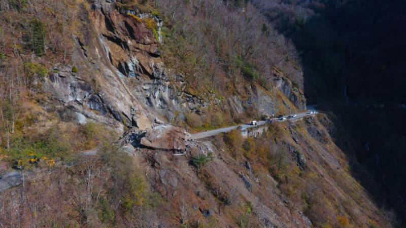 გზის მეორე ნაწილზე ჩამოწოლილი ქვის დიდი ლოდისგან გზის გასუფთავება ბურღვა-აფეთქებითი სამუშაოების ჩატარების შედეგად მოხერხდა. ადგილზე სამუშაოებს საავტომობილო გზების დეპარტამენტის შესაბამისი სამსახურები ახორციელებდნენ. ადგილზე იმყოფებოდბენ სამეგრელო-ზემო სვანეთის სახელმწიფო რწმუნებულის მოადგილეები.