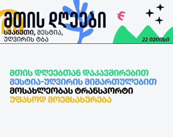 მთის დღეებთან დაკავშირებით, მესტია-უღვირის მიმართულებით მოსახლეობას ტრანსპორტი უფასოდ მოემსახურება